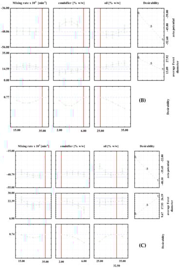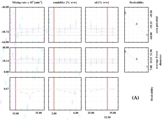 Moreover, optimization was performed for stability of emulsion expressed as zeta potential and for the average Feret droplet diameter based on the desirability profiles obtained from the RSM predicted values. The desirability scale in the range from 0 (undesirable) to 1 (very desirable) was used.