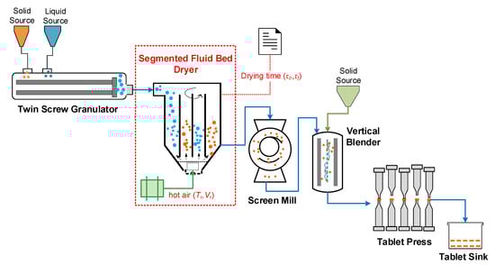 - Wang, Z.; Escotet-Espinoza, M.S.; Ierapetritou, M. Process analysis and optimization of continuous pharmaceutical manufacturing using flowsheet models. Comput. Chem. Eng. 2017, 107, 77–91. [Google Scholar] [CrossRef]