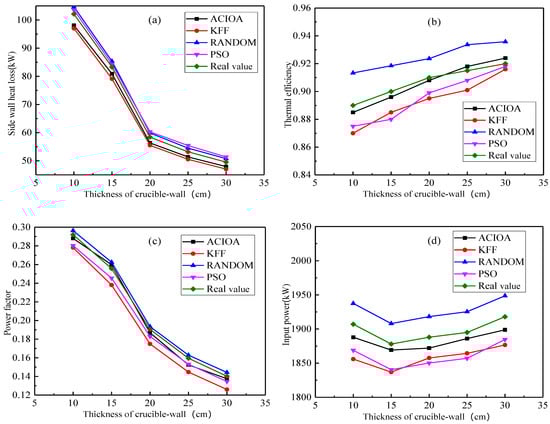 - Because the increase in crucible wall-thickness improves the insulation of the furnace, the optimal input power is first reduced and then increased. Again, the improved method has good estimation accuracy and global optimization capability.