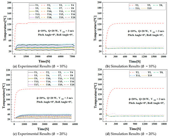5.3. Comparison between the Experiment and Simulation on Thermal Performance