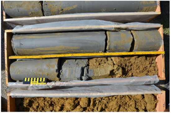 A large geophysical test field was built at the site of the Geological Survey of Austria. Part of the test field is a BHE, which was core-drilled to a depth of 80 m. As a result, the drill core (Figure 1) was available for detailed investigations, which included, amongst others, mineralogy, geochemistry, thermal conductivity, heat capacity, and soil moisture.