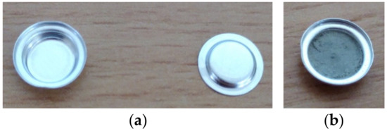 (a) Aluminum crucible and lid; (b) crucible filled with drill core sample.