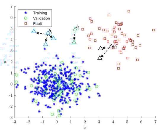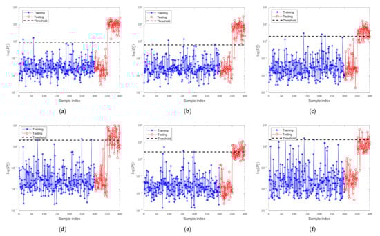 - Compare with the threshold . If , is considered faulty. Otherwise, is detected as a normal sample.