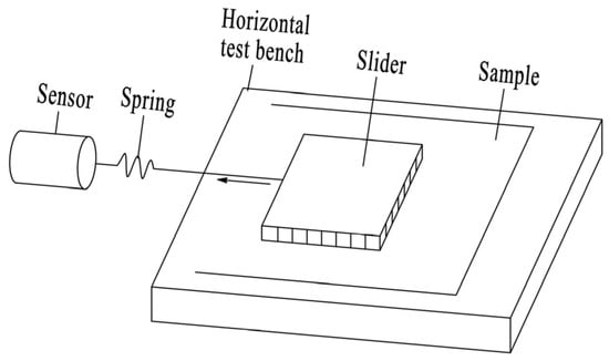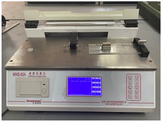 In this paper, the static friction coefficients between urea particles and PVC plates and between urea particles and particles were measured using an MXS-05A friction coefficient meter (made by SUMSPRING in Jinan, China), as shown in Figure 5. The measurement principle is shown in Figure 6.