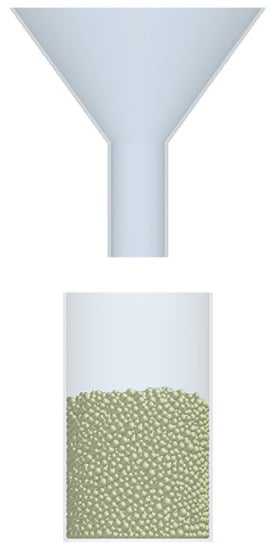 As shown in Figure 11, using the calibrated parameters for the packing test, the height of the particle bed was 50 ± 0.3 mm and the bulk density was 794.1 kg/m3, with a relative error of 1.19% with the physical test results.