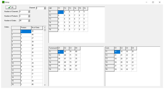 Based on the characteristics of these genetic algorithms, the scope is expanding, and research on the optimization and improvement of genetic algorithms is becoming more sophisticated. In recent years, production planning based on genetic algorithms has been analyzed in the literature using various software [44,45,46,47,48,49,50,51,52,53,54]. Our article contributes to the existing literature in that we did not use existing software. Instead, we developed software based on the genetic algorithm to solve this problem. We consider that this model is easy to adopt for different production problems, and can be customized by the software that we developed in comparison to the models using standard software.