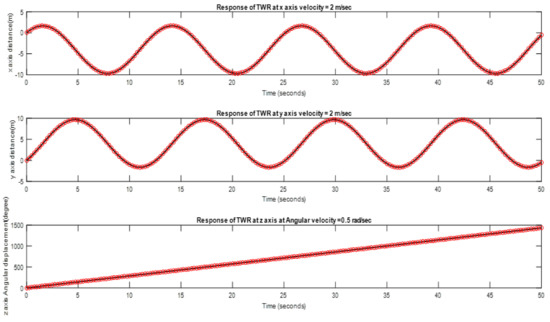 A block diagram of the TWR is shown in Figure 1. The time-varying robot posture (position coordinates x and y, along with orientation angle in a specific coordinate system) caused by the motion of the robot is represented by Equation (1):