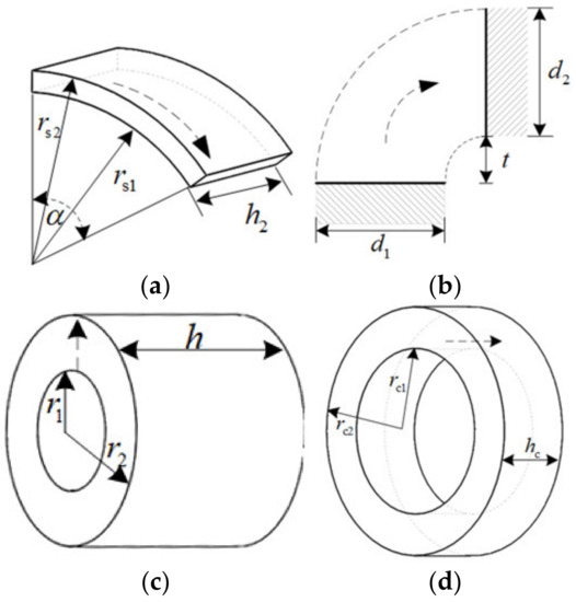 , ~, , , , can be equivalent to parallel torus shape, as shown in Figure 4d, and the reluctance can be expressed as: