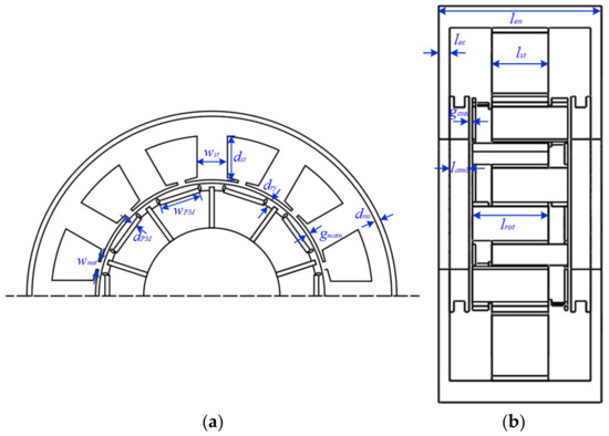 The dimension parameters of HE-CPM are defined in Figure 7 and are listed in Table 2. After that, the parameters that have a major influence on the machine performance will be selected and optimized to obtain better machine performance. Finally, the results before and after optimization will be compared to verify the effectiveness of the optimization algorithm and 3D MEC.