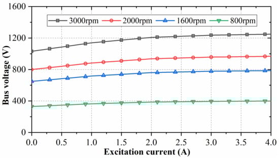 Relationship between bus voltage and excitation current at different speeds.
