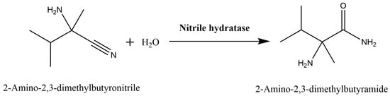 - Lin, Z.J.; Zheng, R.C.; Zheng, Y.G.; Shen, Y.C. Biosynthesis of 2-amino-2,3-dimethylbutyramide by nitrile hydratase from a newly isolated cyanide-resistant strain of Rhodococcus qingshengii. Biotechnol. Lett. 2011, 33, 1809–1813. [Google Scholar] [CrossRef]