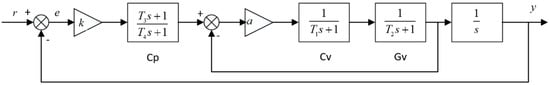 The position controller Cp is designed with a simple and practical zero-pole cancellation method. The open-loop transfer function of the forward path Gcp(s) is obtained as Equation (27).