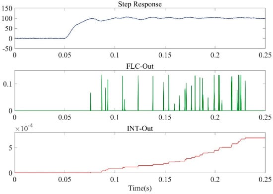 It can be seen from Figure 13 that under the guidance of the fuzzy rules when the system starts a step response, the output of the FLC changes accordingly, so the output of the integrator changes accordingly, and the system type changes dynamically. The step output curve quickly reached a stable state, indicating that the FLC access is effective and the goal of dynamically changing the type has been achieved.