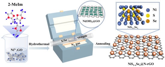 2.2. Preparation of NiS1−xSex@N–rGO Composites