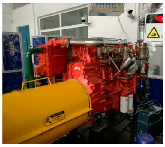 The engine tested is a YUCHAI 6K natural gas engine, rated power 218 kW, rated speed 1500 r/min, gas supply mode is multi-point injection, ignition mode is spark plug ignition, the specific engine structural parameters are shown in Table 1. Figure 1 is the schematic diagram of the engine test bench. Figure 2 is the tested YUCHAI 6K engine. The main equipment of the bench is shown in Table 2. The pressure in the cylinder is collected by AVL GU22CK cylinder pressure sensor, the pressure signal is processed by Ki-Box, and the combustion phase parameters such as IMEP, heat release rate and CA05, CA50 are calculated. Other parameters such as the temperature and pressure, as well as emissions of gas, intake, exhaust are collected by AVL PUMA system.