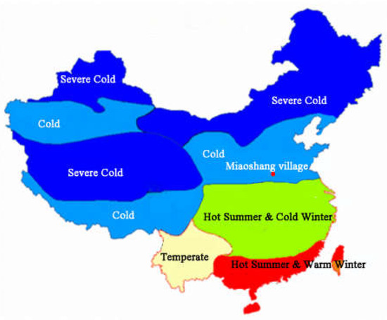 In this study, the on-site measurement was carried out in the coldest time of the year. The winter of Miaoshang village lasts from December to March, and normally the coldest period occurs in January. Hence, this research was conducted from 23 to 28 January 2019.