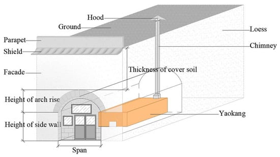 With the background of global warming and carbon neutralization, it is necessary to excavate low-carbon and sustainable development strategies from traditional dwellings. Due to recyclability, low energy consumption, and low hidden carbon footprint, the traditional earthen buildings were considered as economically and environmentally sustainable buildings. A series of studies on earthen buildings has been carried out [1,2,3,4,5]. In China, there is a special earthen dwelling—the cave dwelling (nearly 90% of its structure built with earth), widely distributed in the cold Loess Plateau, which is the most extant form of ancient cave dwellings in the world [6]. Because of its good climate adaptability and low energy consumption, as of the end of the 20th century, more than 40 million people still lived in cave dwellings [7,8]. Therefore, increasing interest in cave dwellings has emerged in recent decades.
