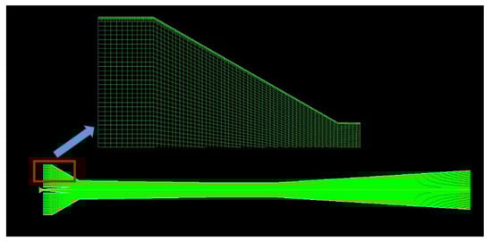 A thermo-compressor model was also developed based on the time-averaged unsteady-state Navier–Stokes equation Equations (4) and (5) and heat transfer equation Equations (6) and (7). Due to symmetric geometry, we employed a 2D axisymmetric approach to simulate the TVC, and the tangential derivations of cylindrical coordinates were skipped [12,13]. The employed 2D axisymmetric model in this study can be presented as: