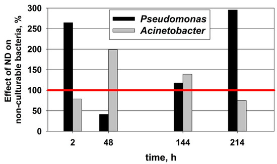 Effect of ND on non-culturable bacteria of the genus Pseudomonas and the genus Acinetobacter.
