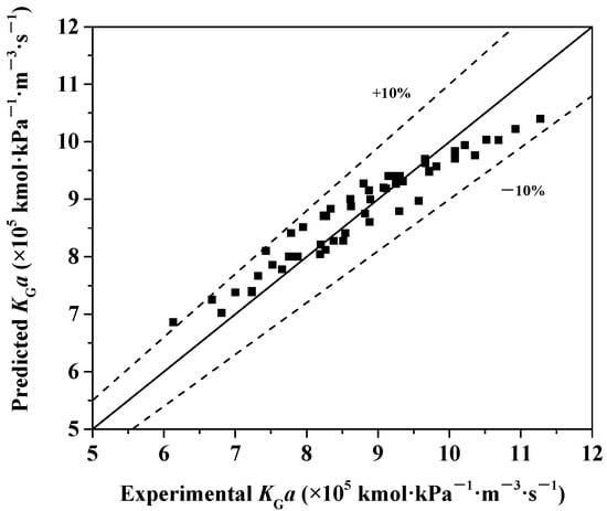 The overall volumetric mass transfer coefficient is a crucial index to assess the mass transfer performance of a gas–liquid contact device. Extensive studies on the modelling of the overall volumetric mass transfer coefficient between gas and liquid in RPBs or other high-gravity devices have been conducted [,,,,]. Additionally, the modelling of local mass transfer in RPBs has also been proposed [,]. However, there are only a few reports on the performance of mass transfer in the RZB, such as experimental investigations on the effective interfacial area and local mass transfer coefficient [] and qualitative analysis of the mass transfer characteristics []. To the best of our knowledge, there is no report on the modelling of overall volumetric mass transfer coefficient in the RZB. Therefore, modelling the gas–liquid mass transfer behavior described by the overall volumetric mass transfer coefficient in the RZB can provide a theoretical basis for process intensification in the RZB.