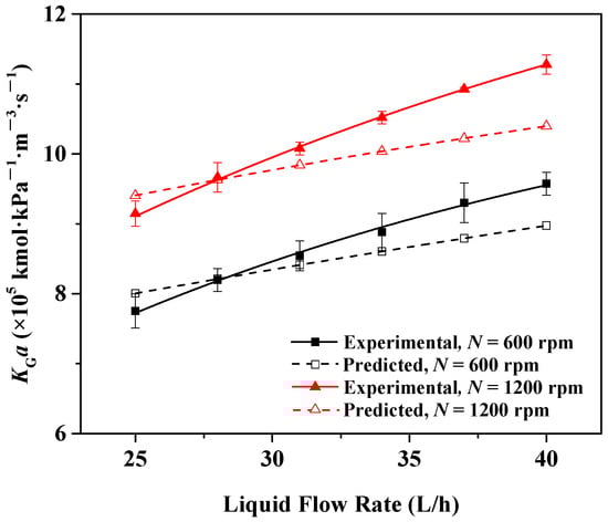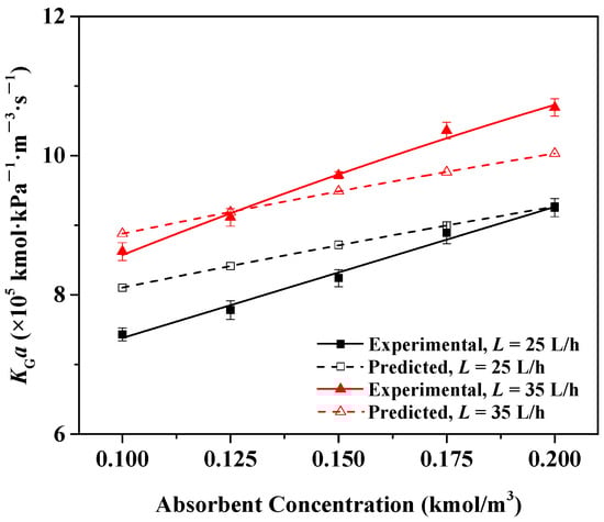 For the chemical absorption of CO2 into NaOH solution, CO2 is absorbed from the gas phase to the liquid phase via a gas–liquid interface. During this process, the gas–liquid mass transfer depends both on the liquid-phase and gas-phase mass transfer. Therefore, the gas–liquid effective interfacial area (a), liquid-side mass-transfer coefficient (kL), and gas-side mass-transfer coefficient (kG) should be considered for calculating KGa.