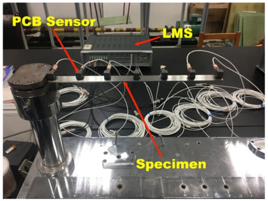 In this paper, a LMS data acquisition instrument and PCB sensor are used for the modal test, the sensors are calibrated before the experiment, and the specifications and models of the equipment used in the modal experiment are shown in Table 3. The single-input multiple-output (SIMO) measurement method is used, and the data collected at each measurement point are linearly averaged five times to obtain an accurate response signal. The test equipment is connected as shown in the Figure 4 and Figure 5, the measurement method is the hammer method, the modal identification analysis is performed by the PolyMAX module identification method, and the frequency response function and its modal parameters are obtained.