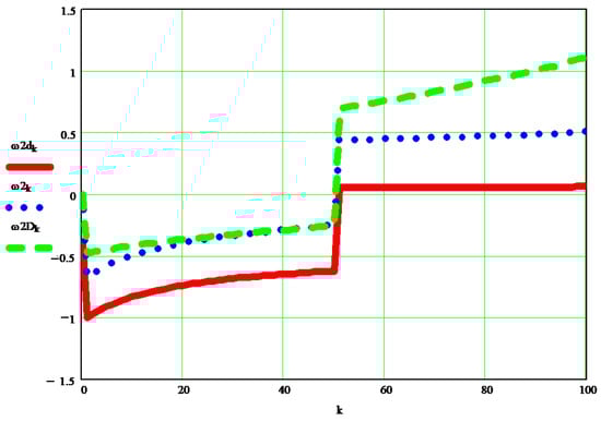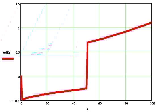 Figure 6 shows the variation of the dynamic angular velocity 2 (w2D [s−1]), depending on the independent parameter k.