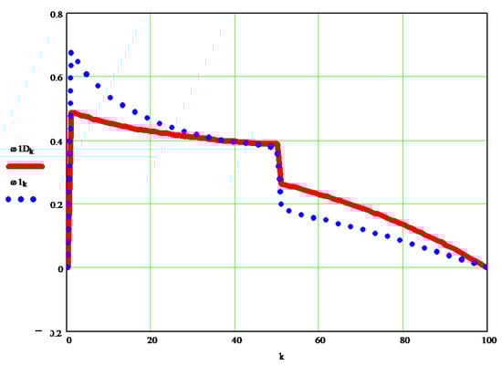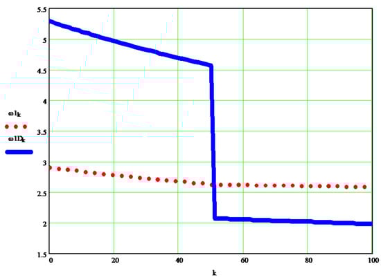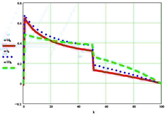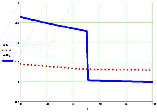 Figure 5 shows the variation of the dynamic angular velocity 1 (w1D [s−1]), depending on the independent parameter k.