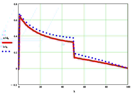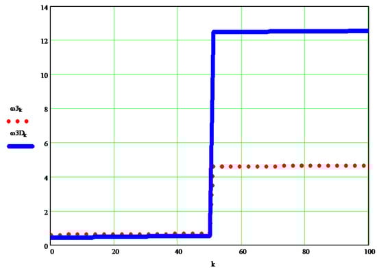 The original dynamic angular velocity w1d [s−1] can be seen in the graph in Figure 9, and the differences between it and the kinematic velocity w1 [s−1] are visible in the diagrams in Figure 10.