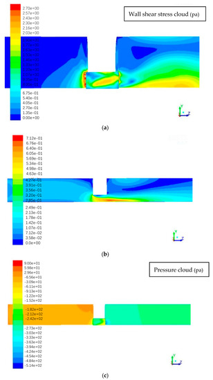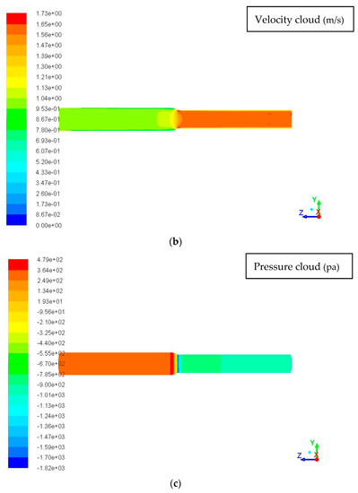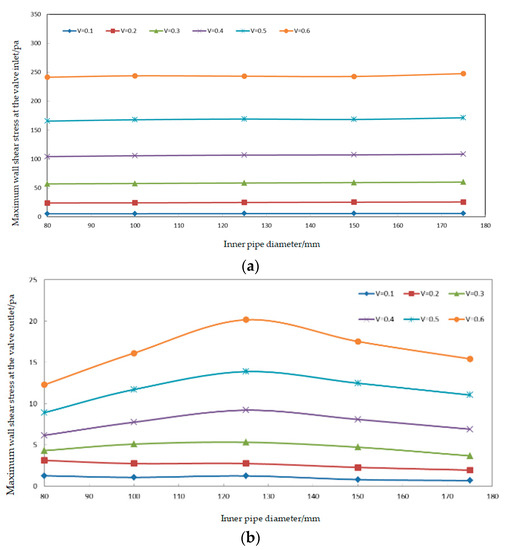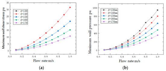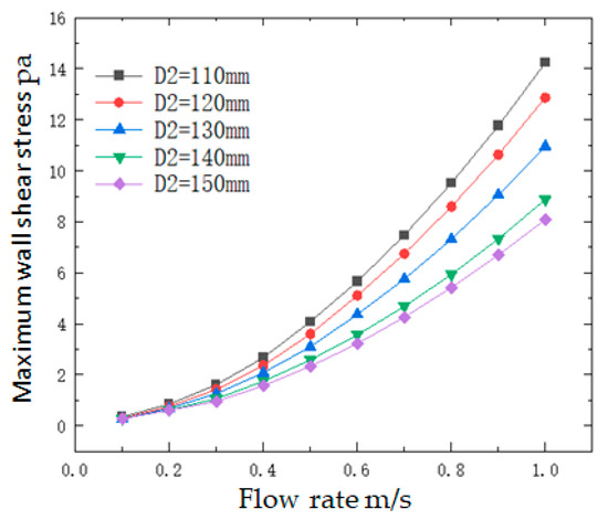 - the larger the inlet flow rate, the greater the difference between the maximum wall shear stress and pressure corresponding to the different outlet pipe diameters of the reducer