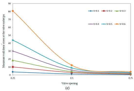 - Analysis of the change in shear stress, the opening increases, the fluid passing at the gate valve slows down, the flow rate decreases, the boundary layer at some locations increases, and the valve is subjected to a sharp decrease in wall shear stress under the combined effect of both.