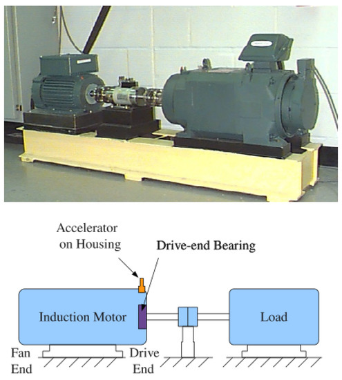 CWRU bearing test bench and its schematic diagram.