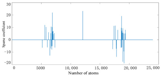 Each symbol in Formula (14) has the same meaning as the symbol in Formula (12), and is the set of solution vectors of . By solving the optimization problem in Formula (13), we obtain the sparse coefficient vector corresponding to the initialization dictionary through the sparse representation solution process. Next, the dictionary learning stage—knowing the sparse vectors obtained by the sparse coding process—updates the dictionary column by column. Suppose we want to update the atom of the dictionary, denoted as , and the kth coefficient of the sparse coefficient matrix.