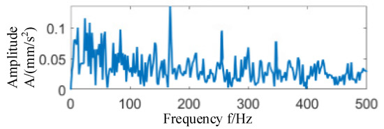 In order to separate harmonic components from vibration signals, we can choose a suitable over-complete dictionary to separate harmonic components from vibration signals using an orthogonal matching tracking algorithm. We choose the Fourier dictionary as the over-complete basis because it is comprised of a series of sine and cosine functions, in line with the waveform characteristics of harmonic signals. The Fourier dictionary is set as , and its sparsity means that the sparse matrix is . By introducing the over-complete dictionary, the original vibration signal can be expressed as