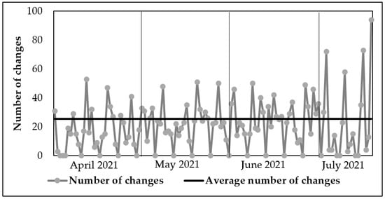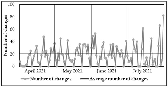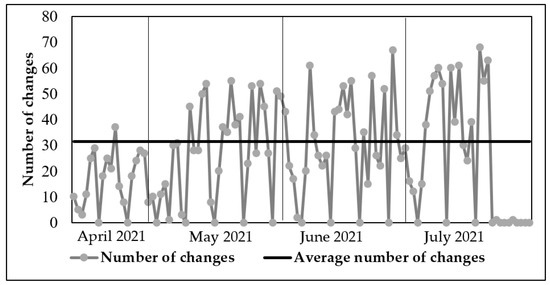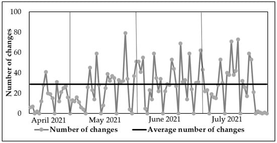 The case plan optimized in this way had to be recalculated to determine the number of changes each day for four months in advance. It was necessary to consider how many changes per day would be made with this variant. The course of the changes is shown in Figure 5.