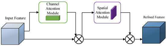 The convolutional block attention module (CBAM) is a soft attention mechanism lightweight module of the convolution module [23], as shown in Figure 3, in which the channel attention module and spatial attention module process data in the different dimensions respectively. First, the channel attention module is used to compress the spatial dimension of the feature graph, and then the spatial attention module is used to compress the channel dimension. Finally, the convolution operation is used to ensure that the output data dimension is consistent with the input data dimension, so as to complete the construction of the attention mechanism.