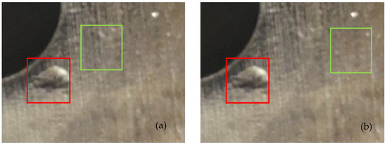 The IoU loss function also has certain shortcomings that cannot accurately reflect the coincidence degree of the two regions. Figure 10a indicates that the real defect and the prediction defect are close, and Figure 10b indicates that the real defect and the prediction defect are far away from one another. When the prediction box does not coincide with the ground-truth box, the resulting loss is 0, and the network cannot perform parameter learning.