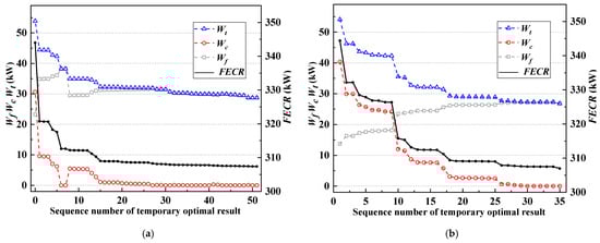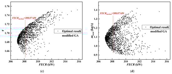 (2) The continuity improvement implemented in the modified GA makes it have a better convergence. Compared with 29.3% of the optimized FECR lower than 308 kW by using standard GA, the modified GA increases such share to 47.6%, and the growth rate is up to 62.4%. This modification on the algorithm improves the efficiency of energy-saving optimization of such energy systems such as ECS.