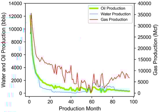 A number of potential use cases exist where ML has been applied as part evaluating the effects of hydraulic fracturing designs on hydrocarbon production in unconventional reservoirs. As an example, several studies utilize static productivity indicators that reflects cumulative production under a fixed time duration (i.e., six months or one year) as response variables [,,,,] to evaluate potential well response to various hydrofracking completion designs. The use of static response variables enabled straightforward evaluation of input feature impact rating and ranking, as well as sensitivity evaluation. The findings from these studies have proven insightful in identifying key production drivers representative to the study areas evaluated, as well as effective in approximating well productivity potential given the associated completion design and placement choices. However, the findings are not directly translatable to applications in the oil and gas space requiring more dynamic, temporal-dependent considerations. Well history matching, hydrocarbon production forecasting, and facilitating data-driven production outlook scenarios are examples that come to mind [,,,].