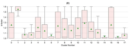 The k-means clustering process determines an optimal number of clusters based on the input dataset features incorporated. Assuming dataset A of V-dimensional entities ai ∈ A, for i = 1, 2, …, N, with N being the number of data entities in the dataset, k-means creates K number non-empty separate clusters S = {S1, S2, …, SK} proximal to centroids C = {c1, c2, …, cK}, by iteratively minimizing the sum of the within-cluster sum of squared distances (WK, show in Equation (4)) between each centroid and the data entities associated [].