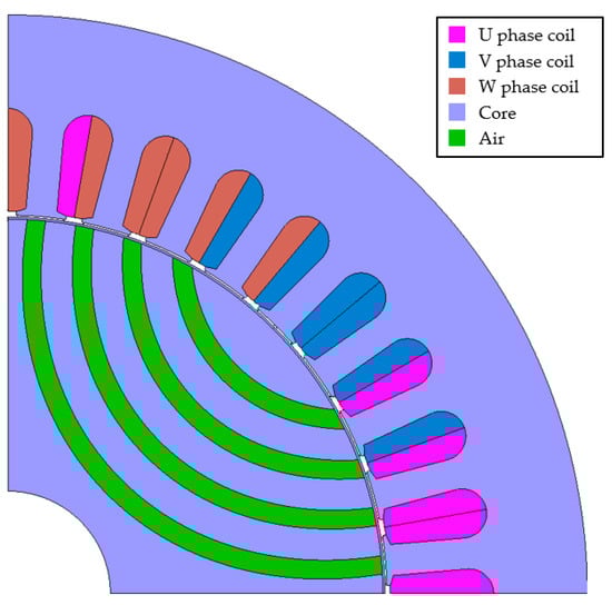 Induction motors (IMs) are reliable, have a simple structure, and are inexpensive because rare earth magnets are not used [2,3,4]. In addition, IMs have the advantage of being easy to control. For this reason, approximately 70% of all industrial load on a utility is represented by IMs [5,6]. However, because IMs have been used for a long time, the development has reached saturation and it is difficult to further improve the efficiency. Therefore, it is difficult for the IMs to respond to harsh environmental regulations.