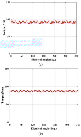 Torque waveform of the model: (a) non-skewed model; (b) skewed model.