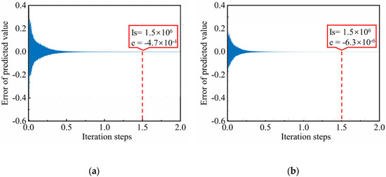 The variation in prediction error with iteration steps: (a) total pressure training error; (b) efficiency training error.