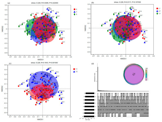 The SPSS (version 22.0) was used for statistical analysis through one-way analysis of variance (ANOVA) and multivariate analysis of variance (MANOVA). The significance of differences among multiple groups was analyzed by the Kruskal–Wallis rank–sum test. Additionally, Tukey–Kramer and multiple tests were adopted for the post-hoc test and correction of fdr, respectively. The scatter plots, bar charts, and heat maps of the obtained data were plotted using Origin (version 2018) software. The Wayne plots were plotted using the UpSet package (version 1.4.0). Furthermore, to understand the evolutionary relationships, phylogenetic trees were constructed with the MEGA package (version 7.0) following the neighbor-joining method [14].