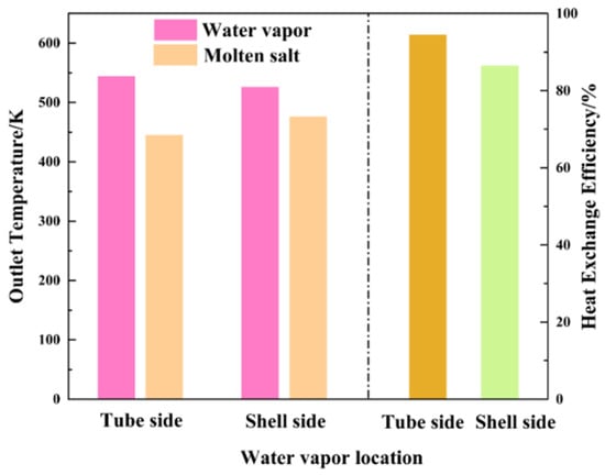 | Water Vapor Inlet Temperature (°C) | Water Vapor Outlet Temperature (°C) | Molten Salt Inlet Temperature (°C) | Molten Salt Outlet Temperature (°C) | Heat Transfer Efficiency (%) |