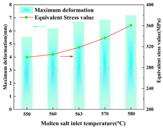 3.2. Influence of Inlet Temperature on Heat Exchange Efficiency and Stress Distribution Characteristics of Heat Exchanger