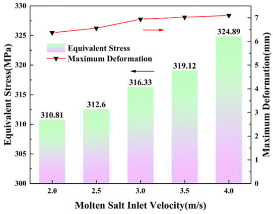 | Molten Salt Inlet Velocity (m/s) | Water Vapor Inlet Temperature (°C) | Heat Transfer Efficiency (%) | Equivalent Stress (MPa) | Maximum Deformation (mm) |