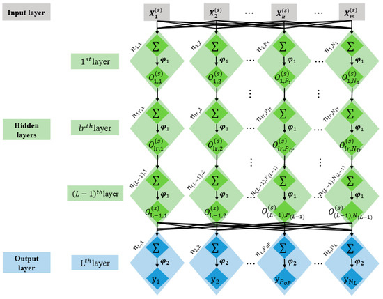 Figure 3 illustrates the structure of the ANN learning model where denotes the th input data of the th data set, m denotes the total number of input data sets, denotes the th neural node of the lrth layer and denotes the total number of neurons in the th layer. denotes the vector of input data, denotes the total number of data points in the input data set and L denotes the total number of layers other than the input the sum of the layers.