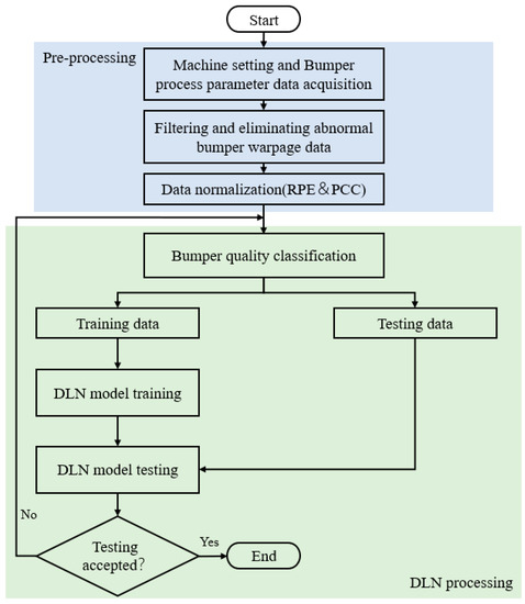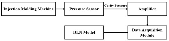 A flow chart of the DLN-based bumper quality inspection system for this study is shown in Figure 7, which includes an injection molding machine, a data acquisition module, pressure sensors and a computer for DLN modeling.