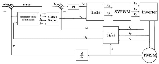 Permanent magnet synchronous motor (PMSM) has been widely used in automotive, aerospace, and other fields in recent years due to its small size, light weight, and high power density []. Because PMSM is a nonlinear, multi-variable, strongly coupled system, coupled with factors such as the parameter changes during operation, it is difficult to establish an accurate mathematical model. Therefore, in recent years the control of PMSM has also become a hot research topic.
